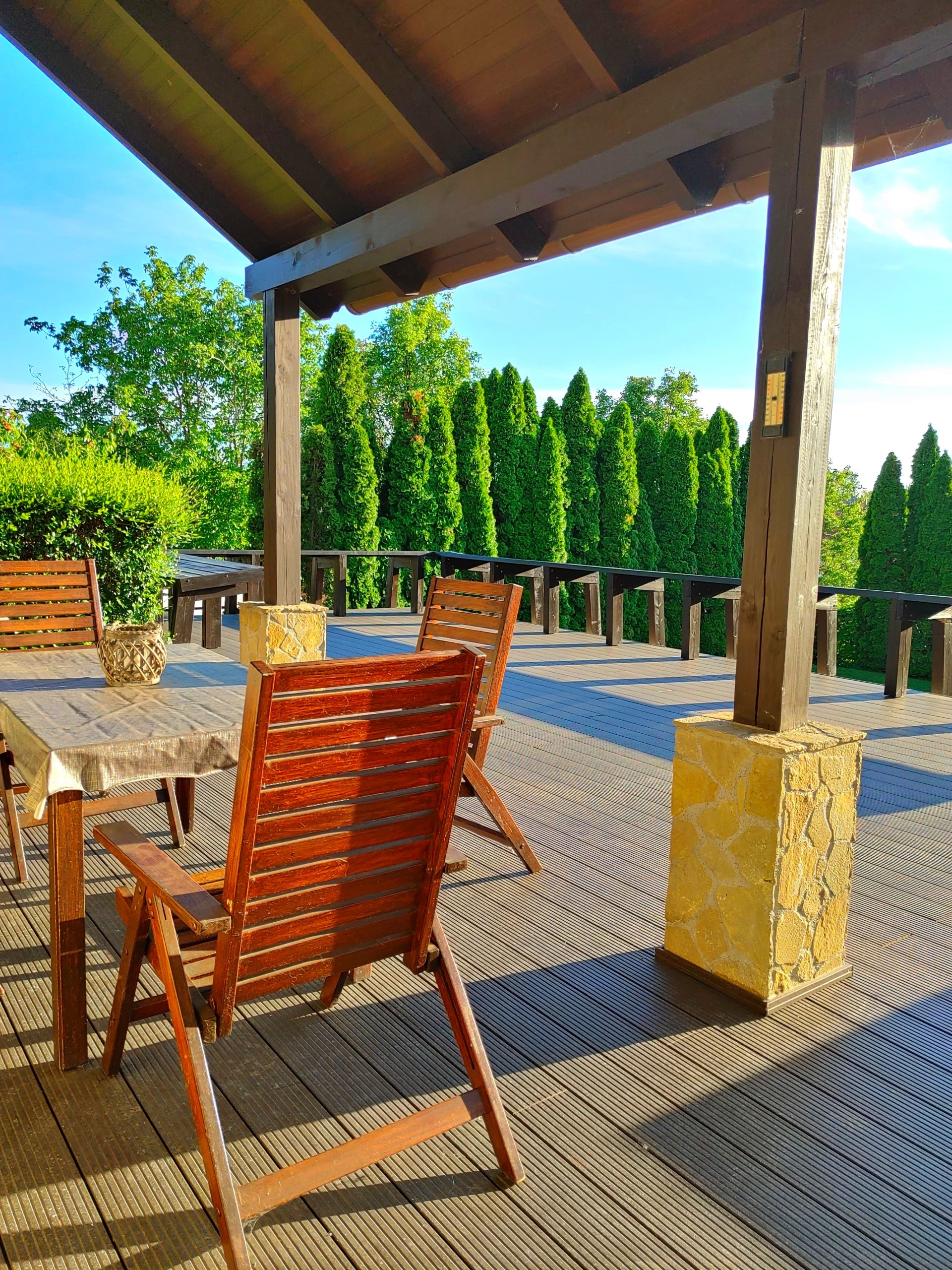 - Überdachte Terrasse (20 m²) vom Esszimmer aus